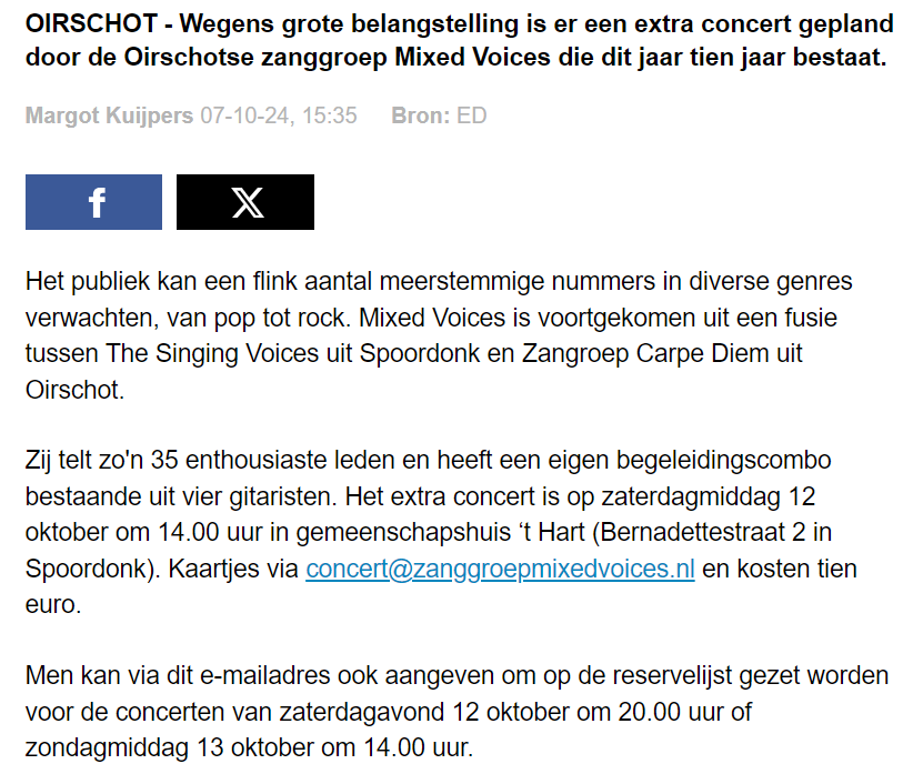 Een enthousiaste zanggroep uit Spoordonk/Oirschot e.o.